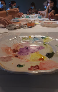Così le nostre amiche, senza sapere a cosa sarebbe servita, sono state invitate a comporre con i colori acrilici una palette di colori preferiti.