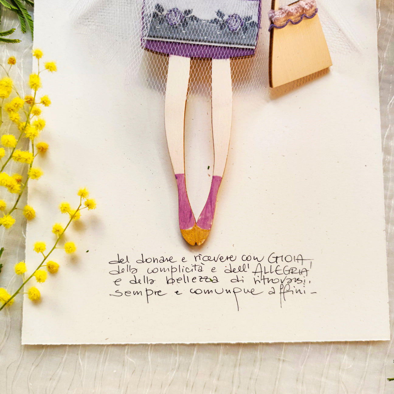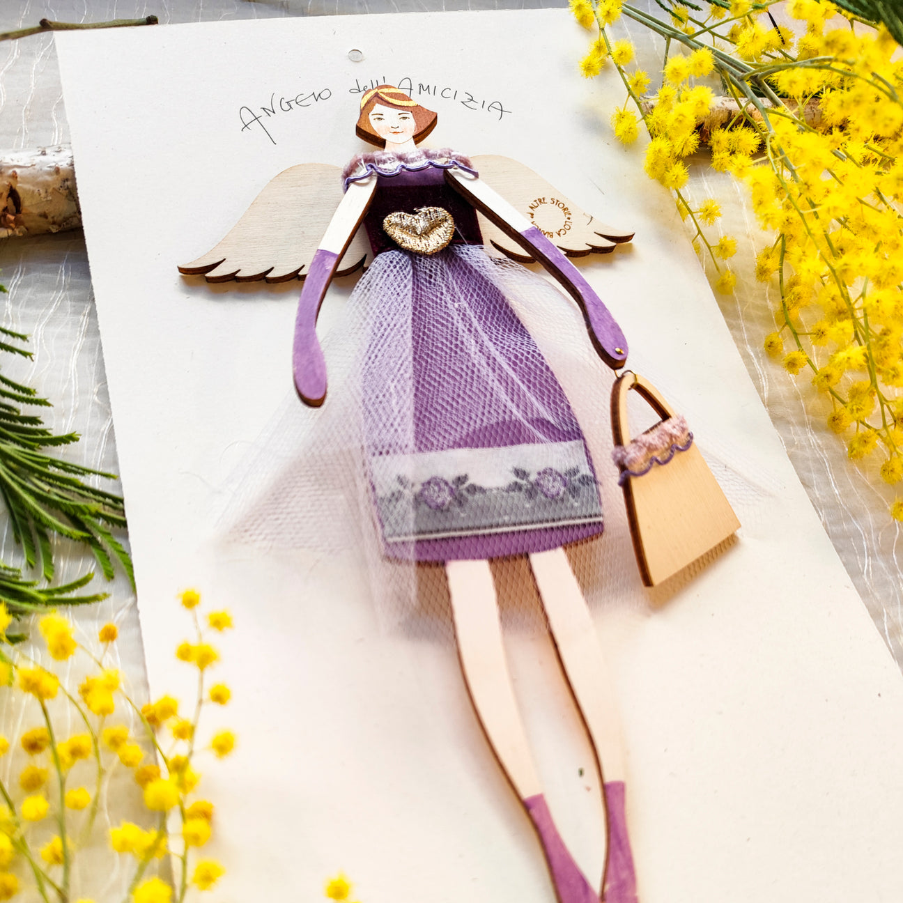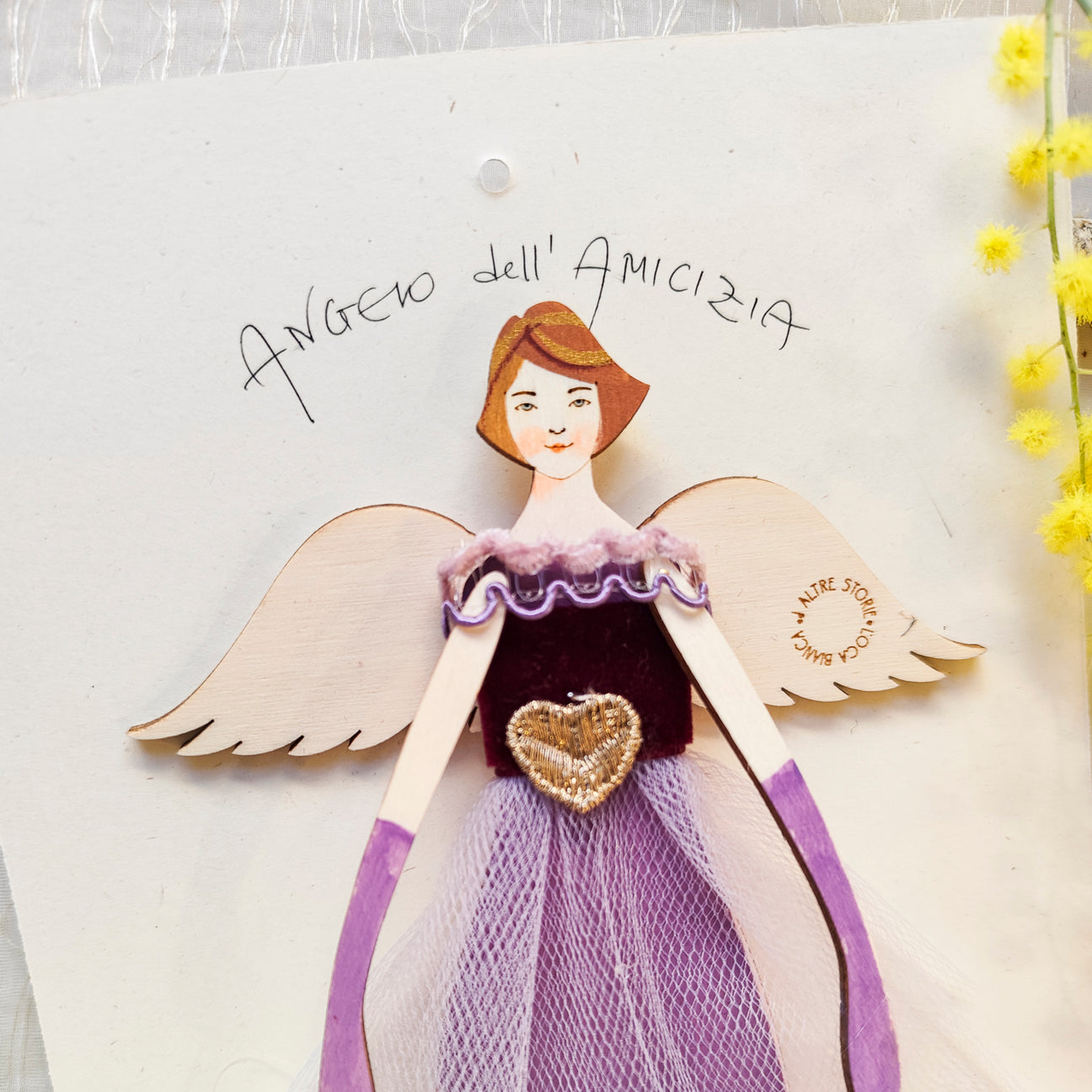 Angeli di legno di pioppo dipinti e vestiti a mano, abiti in tessuti pregiati, seta, cotone, raso o altro utilizzando stoffe di fine serie e upcycling. Regalo culturale e poetico.