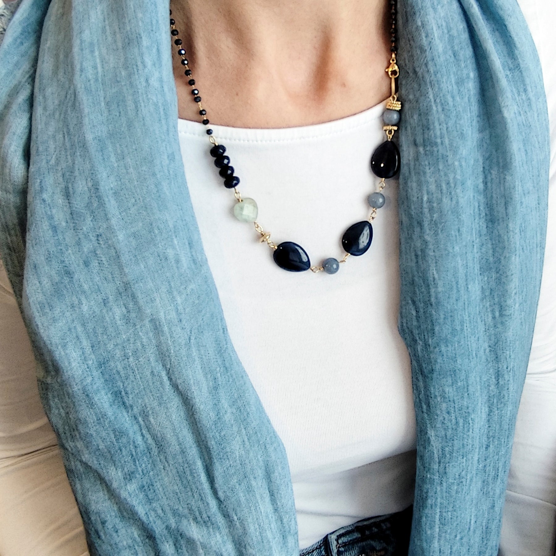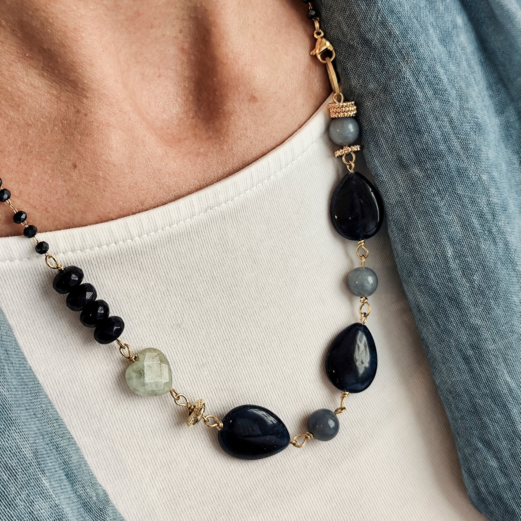 GIADA ZAFFIRO, perle di AVVENTURINA, ACQUAMARINA BERILLI e rosario blu scuro. la versione disponibile in questo momento ha le perle ovali sfaccettate e non a goccia come nelle foto.