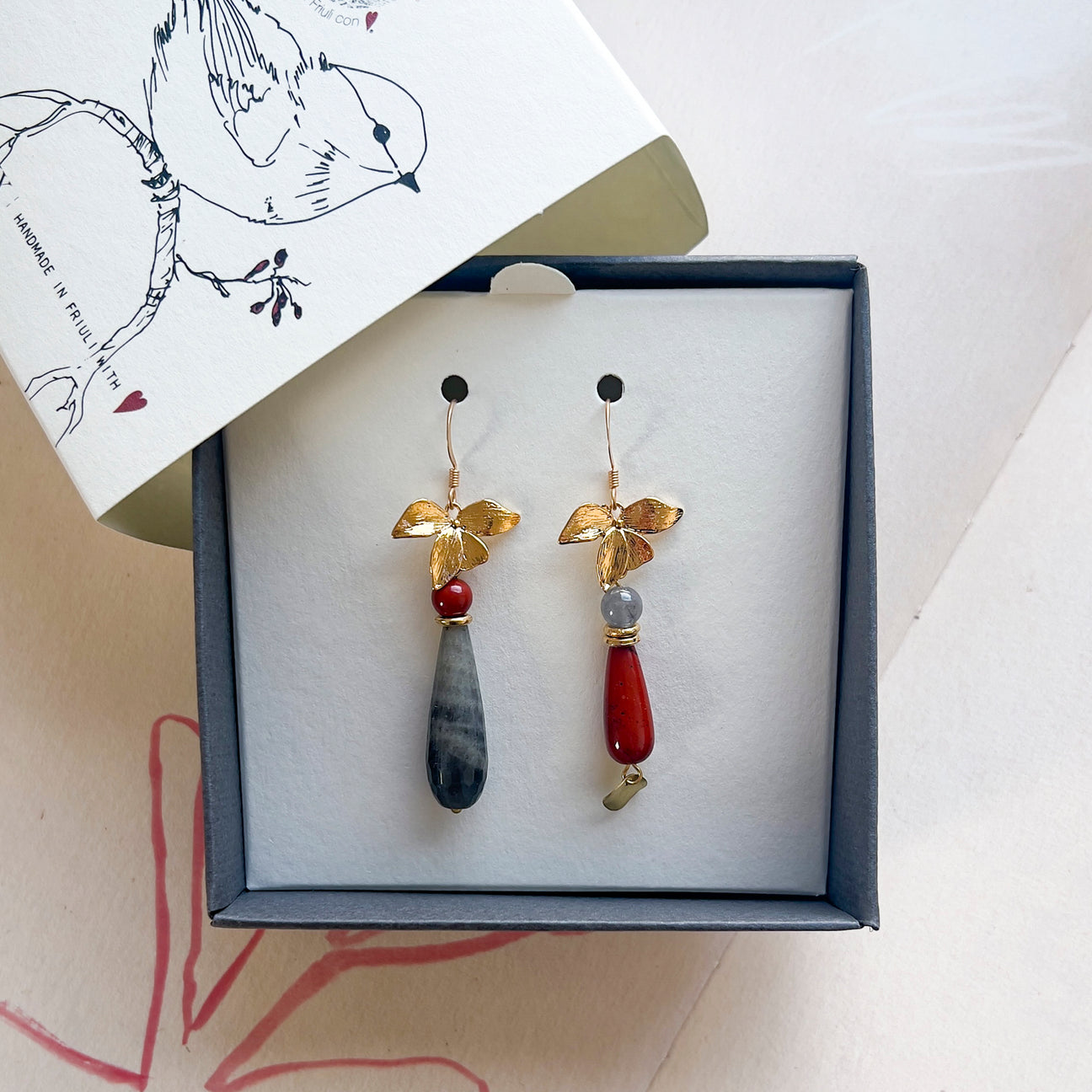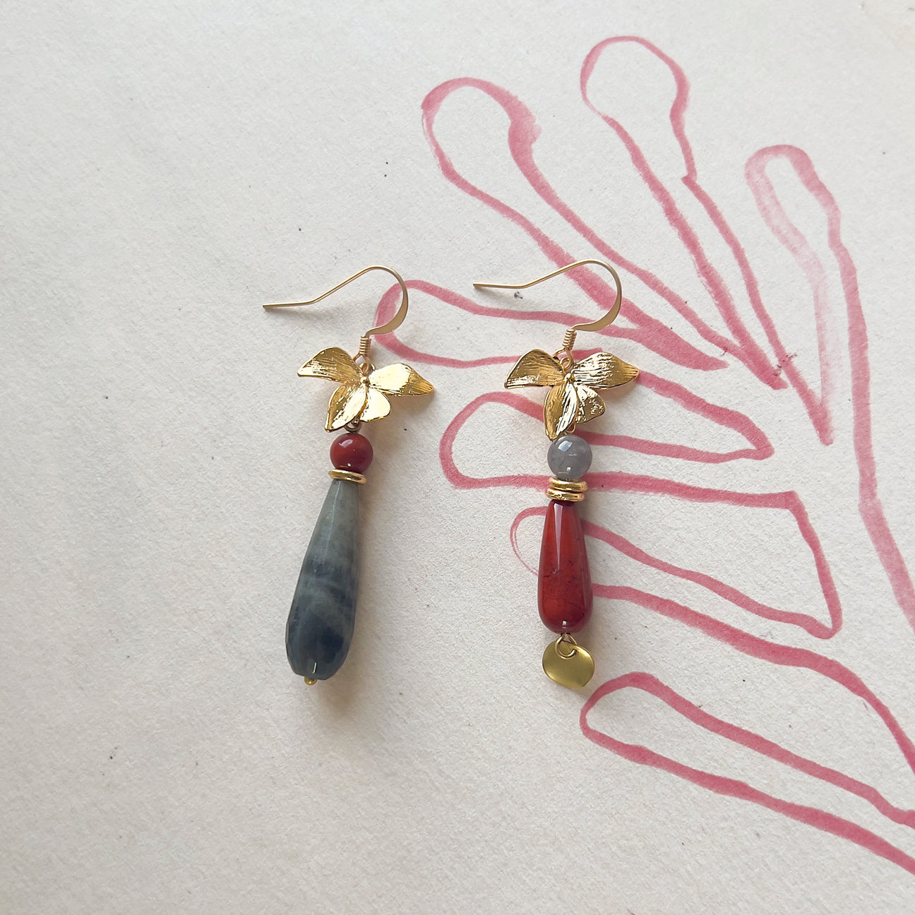 Gocce di DIASPRO rosso, AGATA striata e orchidee dorate
