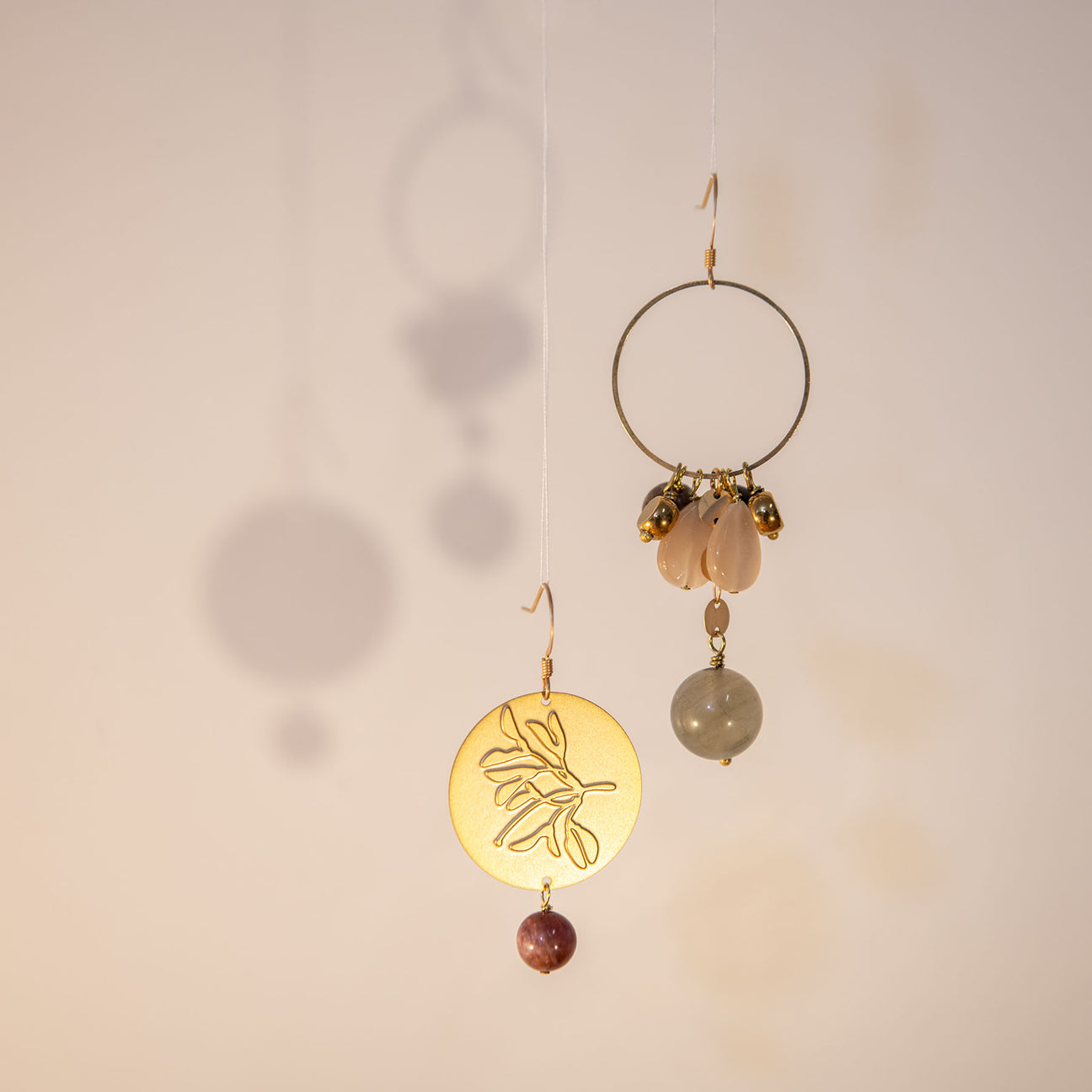sono molto eleganti, la madreperla bianca ne determina la luminosità. Sono tutti pezzi unici quindi il ciondolino finale potrebbe essere diverso (nelle foto si vedono due alternative, il rombo di quarzo o il fiore di madreperla)