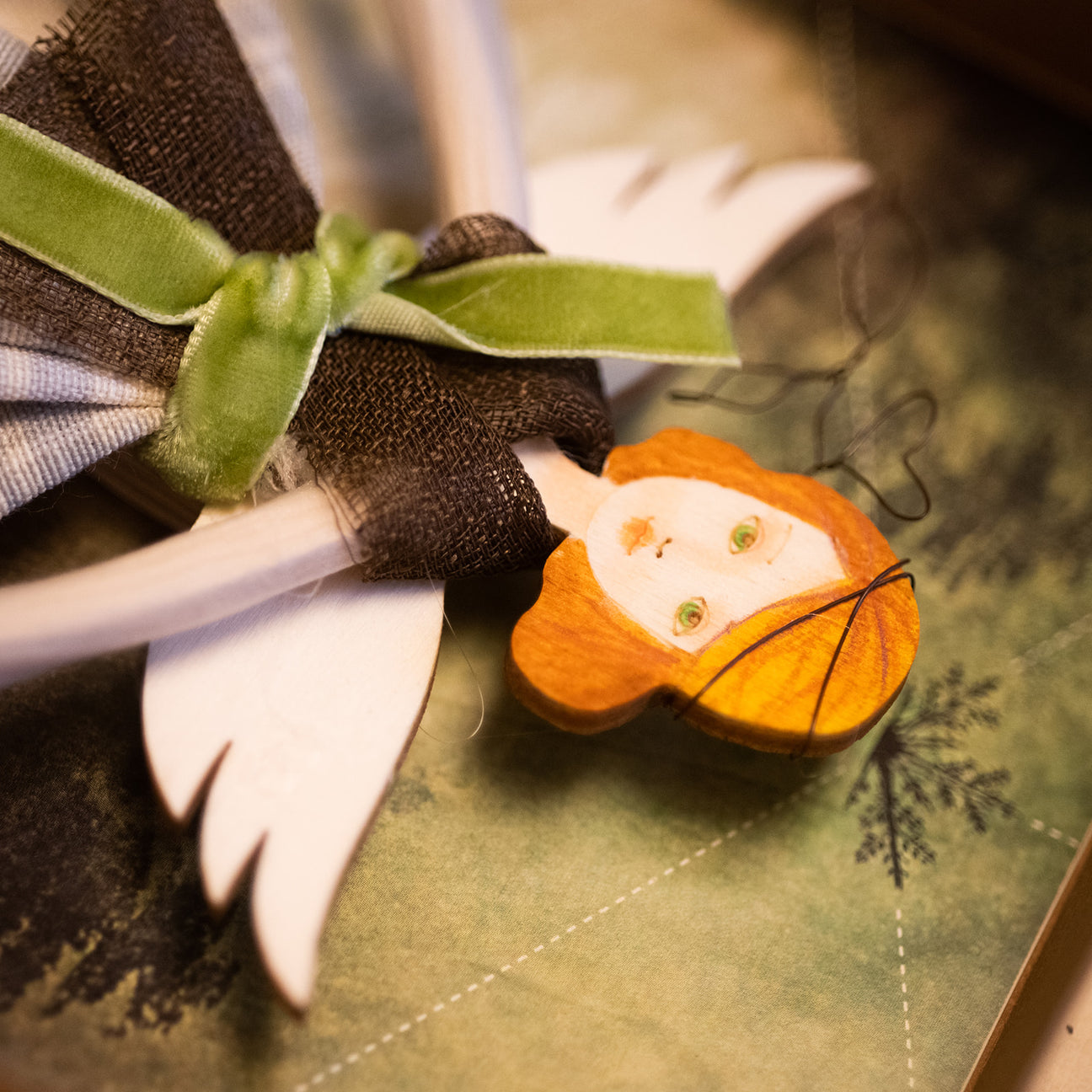 ricchissima serie di dettagli: leprotto in ottone dorato, decorazioni in fil di ferro sagomato a mano