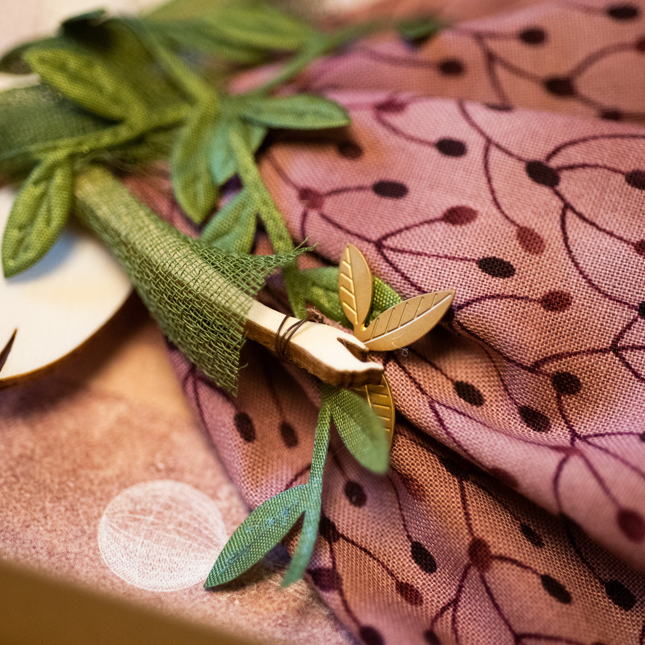 ricchissima serie di dettagli: trifoglio in ottone dorato, decorazioni in fil di ferro sagomato a mano