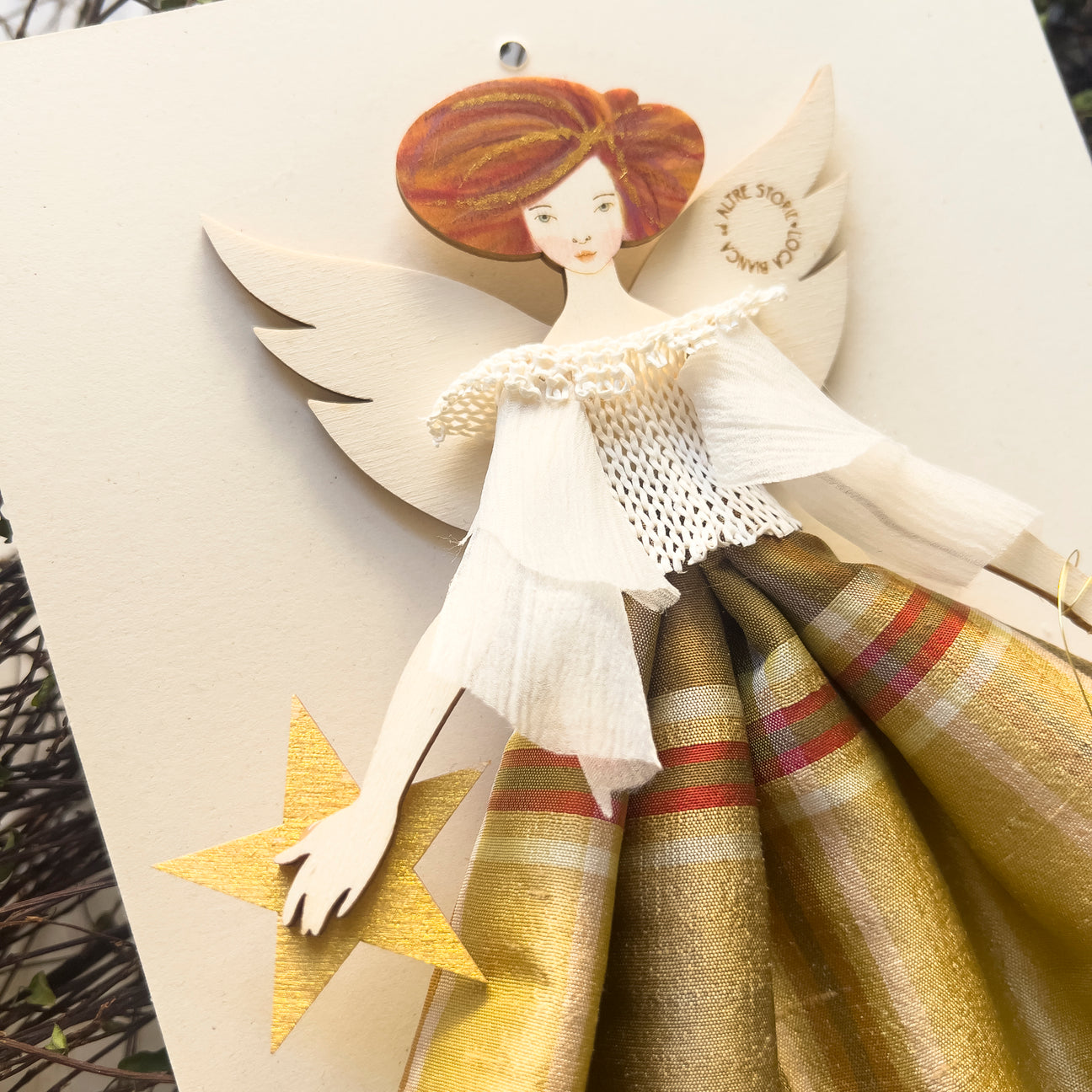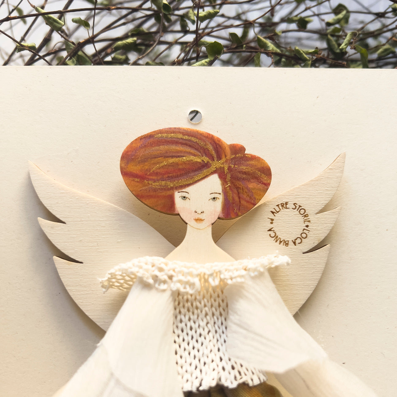 Angelo molto elaborato in legno di pioppo, tagliato a laser e dipinto a mano, festoso e raffinato porta nelle nostre case la MAGIA delle FESTE